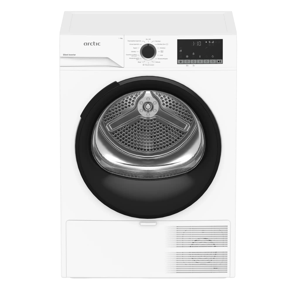Arctic A2T28249W este un uscător de rufe cu o capacitate de 8 kg, echipat cu pompă de căldură, potrivit pentru familiile care își doresc eficiență energetică și protecție pentru țesături.